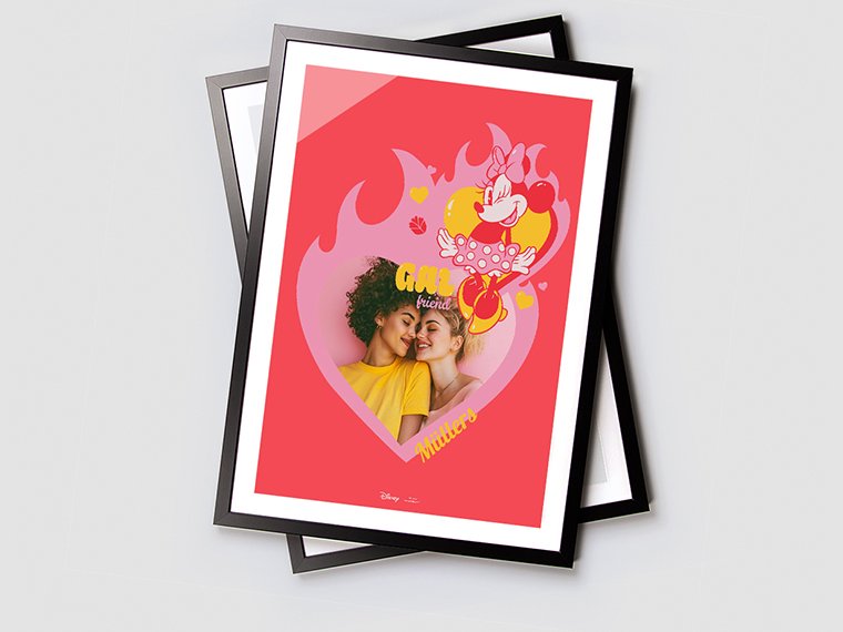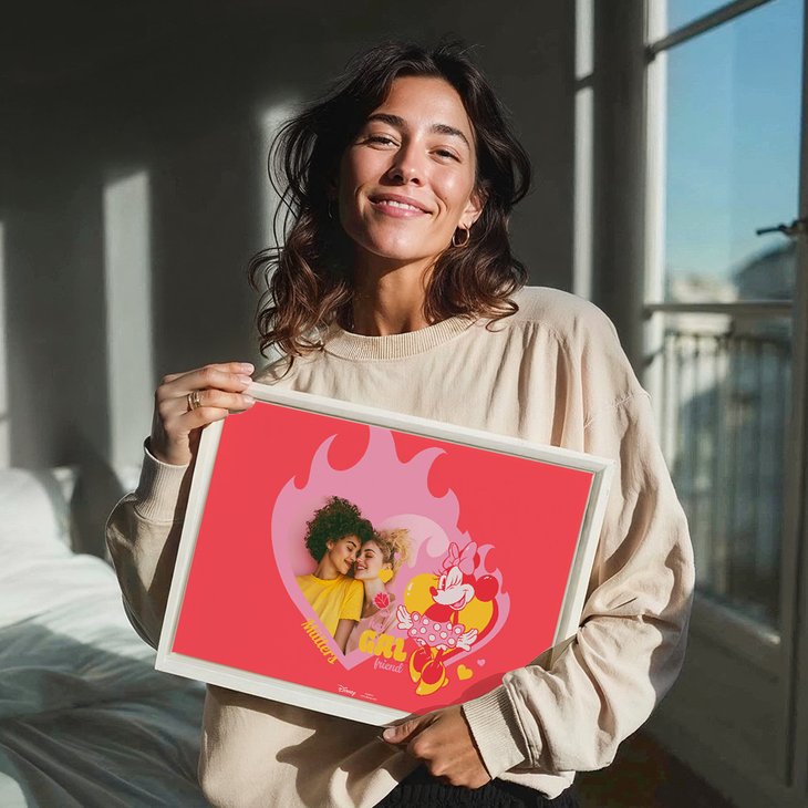 Dein Lieblingsfoto vereint mit Minnie Mouse – für liebevolle Momente voller Disney-Charme. Verfügbar mit und ohne Rahmen.
