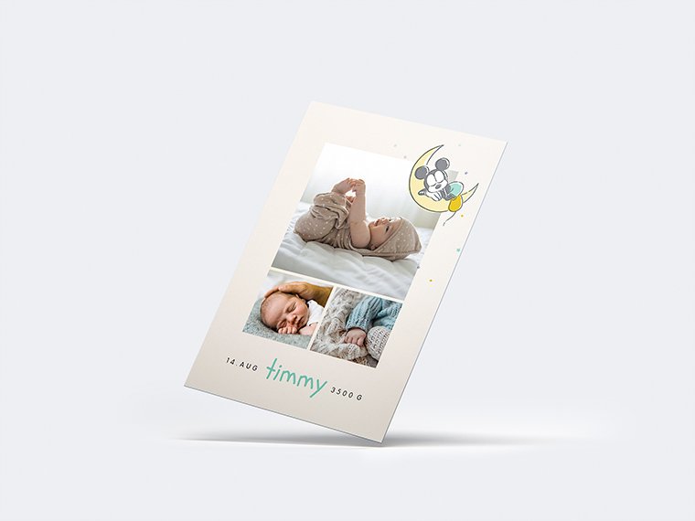 Deine persönliche Babykarte mit Mickey – zart, liebevoll und perfekt für die ersten großen Momente.