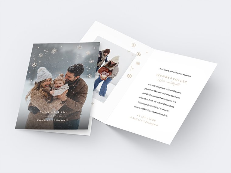 Deine persönliche Weihnachtskarte – mit Deinen Fotos und winterlichem Zauber für liebevolle Grüße.