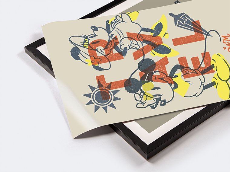 Ein trendiges Mickey-Poster im farbenfrohen Retro-Look – ein echter Hingucker für jede Wand.