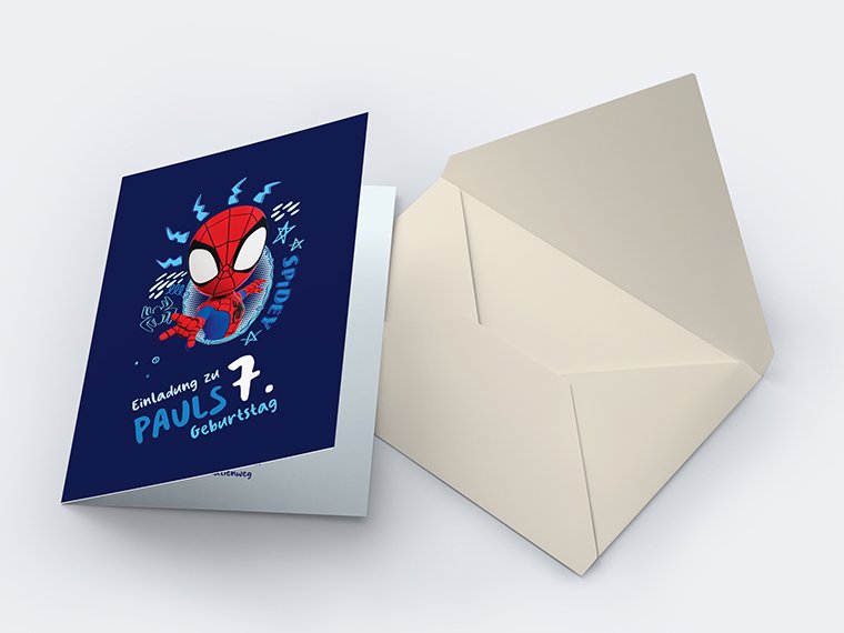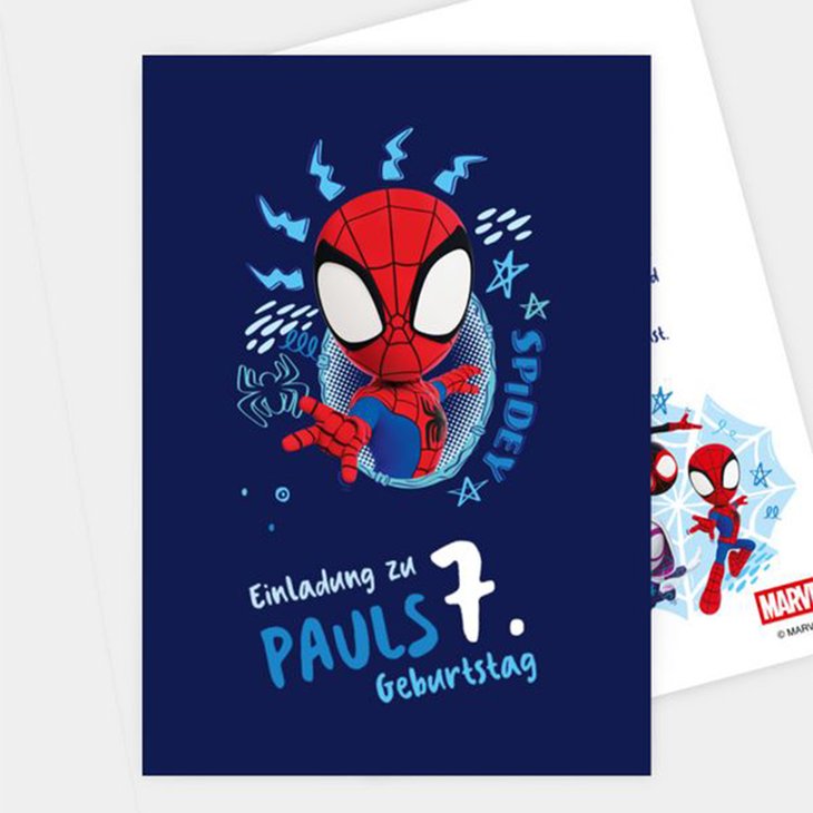 Mach jeden Geburtstag zu einem heldenhaften Abenteuer voller Action und Spaß! Unsere Marvel Spider-Man Karten sind die perfekte Wahl – ob als Einladung zum großen Superhelden-Geburtstag oder als persönliche Glückwunschkarte für echte Spidey-Fans. Mit Spider-Man und seinen Freunden bringst Du kleine und große Helden garantiert zum Strahlen. Gestalte jetzt Deine eigene Spider-Man Karte und verschicke Grüße, die vor Energie nur so sprühen!